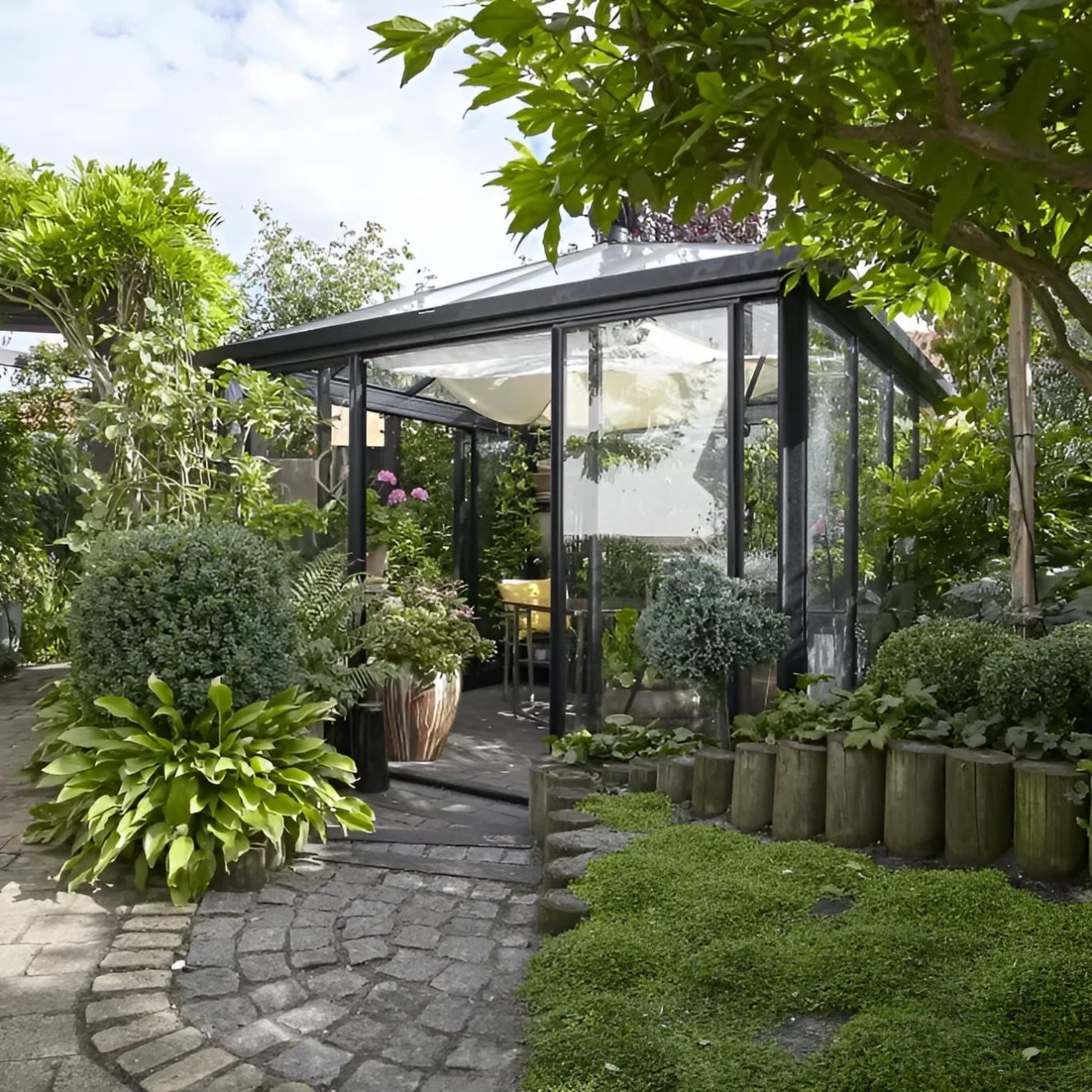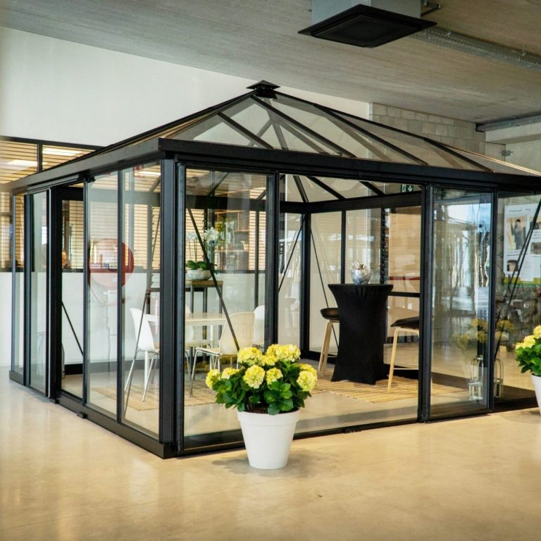 Réalisez vos plus beaux rêves de jardin avec la Pyramide, une serre carrée unique avec beaucoup d’espace à l’intérieur et une vue panoramique à 360 degrés.